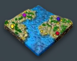 The Channels map consists of a pair of large land masses, divided by a channel, which leads to a large ocean. In the channel, there is a large island, rich with resources, which will help you greatly in your quest for domination. You will depend on ships to transport your forces across the channel, to capture resources, and defeat your enemy. Also, you will need to defend your shores from your foe, and to prevent him from taking the resource rich island from you.