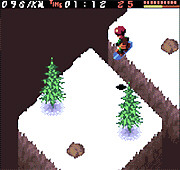 When you begin playing, only courses from stages A and B are playable, but you're awarded points for getting best-times on those courses which allow you to open up the higher stages and unlock an extra course and--eventually--a secret character (the male and female characters play exactly the same, but the secret character--Snow Girl--is quite different). Once you've done all that, though, the replay value would drop pretty quickly if it weren't for the Survival Mode.