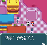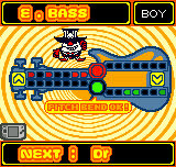 In Cool Cool Jam, your object is to form a band. You can choose between a boy and a girl, and from there on you walk through town, jamming with innocent villagers and Men With Hats. If you do well, you get pieces of instruments (there are twelve instruments in the game). To jam, you first have to please people by clapping to a certain tune. Playing the instruments is very fun to do. Each instrument requires you to hold your NGP in a different position, and the controls are different for each instrument. To play the guitar, for example, you have to hold your NGP upside-down. The strings are controlled with the two buttons, and you pull them with the joystick. You have to pull the strings when the matching colour reaches the string's end.