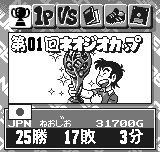 The graphics in Neo Geo Cup are quite good for any system, let alone a portable. The players, ball, and nets look super crisp. All of the animations are smooth and clear, and the screen scrolls very well. There are some nice little details, like how the goalies wear gloves and different jerseys. Awesome! Having much more personality than most sports games, Neo Geo Cup is loaded with high quality hand-drawn art. Characters in menus like, the coach, TV reporter, sports shop owner, burglar, Etc. are all very well drawn and have cool little animations. The overall graphic presentation is great. All the option cool menus have art. The games start with a little "TV report" showing your team practice while the reporter makes his predictions, each goal has a different art screen, a referee pops up with a card after fouls, etc. The game also features a very cool animated intro in classic SNK style. Wonderful stuff.